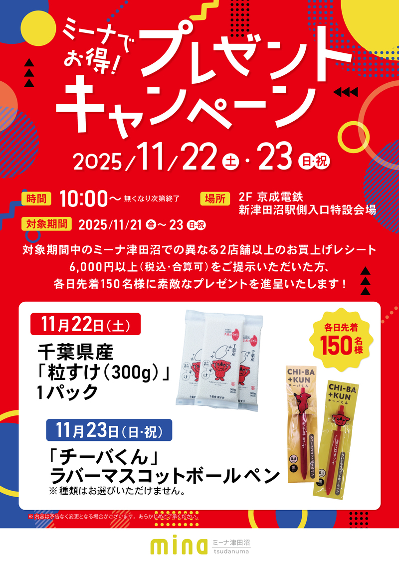 HOME > minaニュース > イベントニュース > ミーナ津田沼 プレゼントキャンペーン