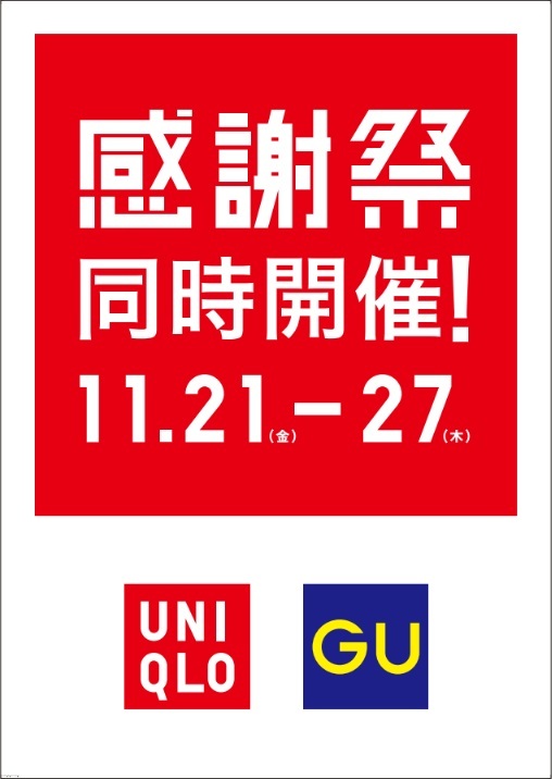 ユニクロ感謝祭は11月21日(金)から11月27日(木)まで!ぜひこの機会にお買い求めくださいませ。