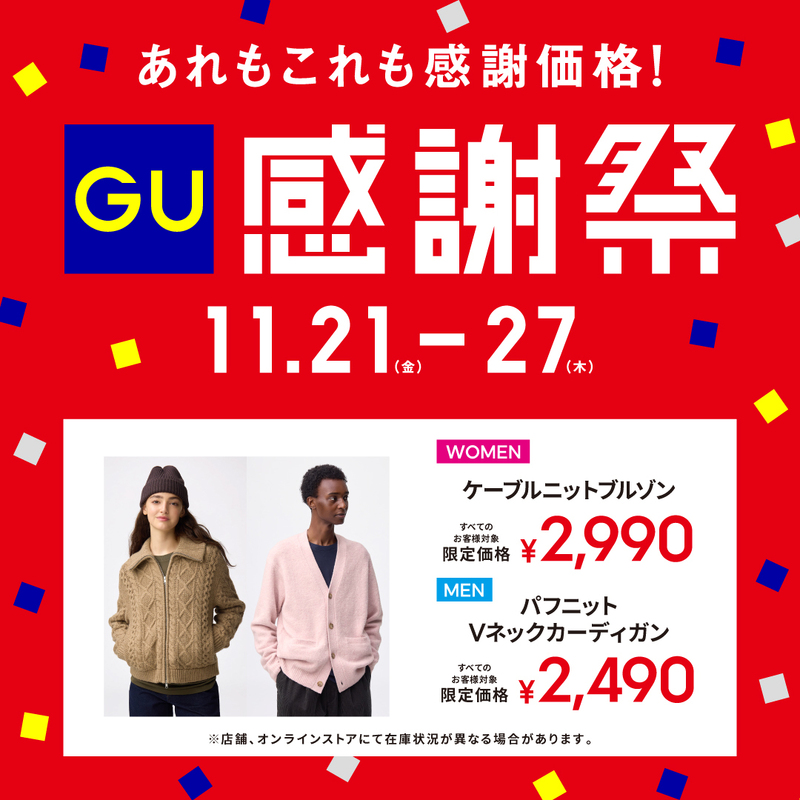 ジーユー感謝祭が全国の店舗とオンラインストアで開催中!
